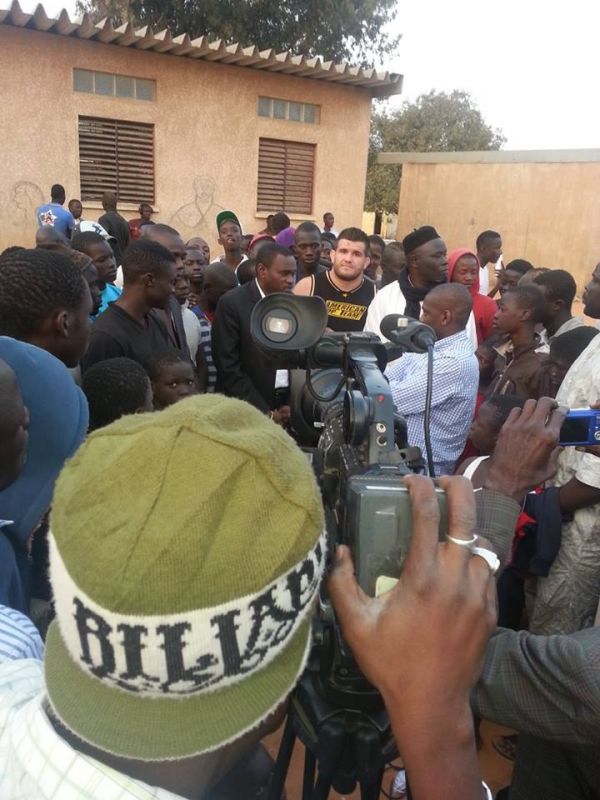 En la escuela de Balla Gaye, entidad a la que está inscrito Juan Espino Dieppa para poder participar en las competiciones de lamb, tuvo lugar también un acto emotivo. El bregador grancanario hizo entrega de varios guantes para la práctica del boxeo. Allí pudo comprobar que su popularidad sigue intacta entre los aficionados y deportistas senegaleses. Unas 1.500 personas aclamaron el regreso del León Blanco, que recibió el cariño de sus simpatizantes.