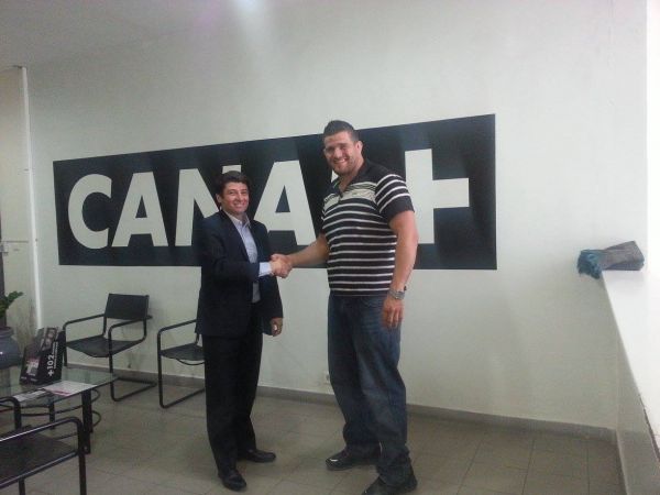 A la izquierda, la firma del contrato en Canal Plus Africa (Jet)