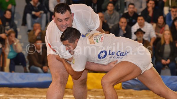El siguiente en la lista fue Jonathan González, que entre sus eliminados contó a David Perdomo, hombre impredecible siempre en las filas adargomistas. Los seniors del equipo visitante encarrilaron el marcador, pero el Adargoma logró elevarlo de forma importante para que su puntal A realizara el trabajo justo. Armando Sotoresolvió a su favor los cruces con Espino y el de destacados con Jonathan González, tras remontar una primera en contra. El instante final entre ambos fue un juego de equilibrios, cadera contra cadera, en la que hizo valer su experiencia para flotar un milésima más el bregador de la capital.