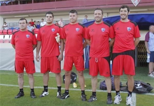 El Huesca presenta a su cuerpo técnico, que encabeza Tevenet y al que asiste el grancanario Rayco Mederos. En la foto inferior, segundo y tercero desde la derecha.