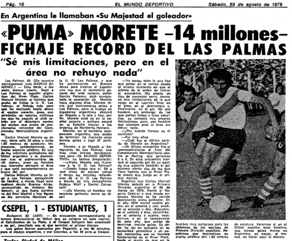 El ariete argentino era menos conocido en la época en España que el otro candidato que la prensa de entonces mencionó como alternativa para el ‘nueve' de la UD Las Palmas: Fernando Morena, el uruguayo de Peñarol, que más tarde militaría en las filas del Rayo Vallecano y Valencia. García Panasco eligió al Puma.