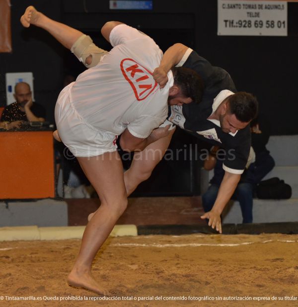 La lucha que empezó el pasado 6 de noviembre acabó este martes, en Las Huesas, con victoria del Adargoma. Aquella suspensión, por ausencia de Fuerza Pública, tuvo un desenlace protagonizado por los puntales. Y esta vez el triunfo cayó del lado franjirrojo, al vaciar José Antonio Santana al primer bregador del equipo teldense, Eliezer Gutiérrez, en la segunda agarrada. La primera había acabado en tablas, pero en la reanudación, con un hombre a su espalda (Cristo Izquier) Santana tuvo el temple para sentenciar jugando con la ansiedad del puntal tinerfeño.