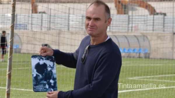 39 años después, Manuel Santana sale al encuentro de los responsables de Tinta Amarilla.es para ofrecernos esa tierna escena de otro momento histórico del fútbol canario. Rubito él, con la equipación roja de la selección española, posa con Tonono ante el abarrotado estadio de Ciudad Jardín. "Como el año próximo será el cuarenta aniversario de aquel partido, he decidido realizar algo con la foto, a la que le tengo mucho cariño. He hecho un calendario del año 2012" -nos lo ofrece- "porque es una forma de homenajear a aquel futbolista y aquel momento. Una pena que Germán no jugara el partido porque también le habríamos pedido lo mismo".