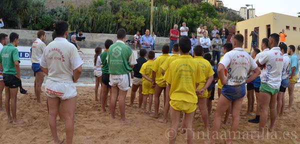Miguel Hernández, luchador del Adargoma, dialoga con Cardona, Sabroso y el concejal de deportes Carlos Ester (C. Torres)