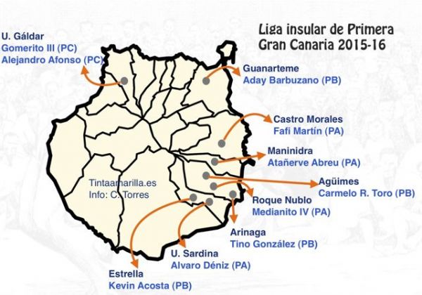 La Liga de Gran Canaria sigue creándose sus propios alicientes. Son nueve equipos ya asegurados dentro de la máxima categoría, con un abanico muy abierto. El décimo conjunto podría llegar a través de Doctoral, convencido de salir con una posible dupla de puntales C como intentó la pasada temporada. Aún falta también por conocer la opinión del CL Almogarén de Valsequillo, aunque la marcha de algunos de sus principales efectivos (Mario Hernández y Yeray Mayor, además de la baja por lesión de su puntal Juan Espino) le dejan entre serios interrogantes.