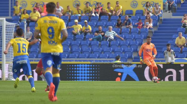 Se la jugó el berlinés en el 2-1. Ha venido a por todas. Minutos antes había sufrido un impacto en el tobillo, doloroso. Y en la jugada del segundo gol, no huyó del choque con Ochoa, en una típica jugada donde siempre el portero tiene ventaja en el salto. Pero ni así. La estrella nueva del proyecto está muy comprometido y su intento por ganarse a la afición de la UD Las Palmas está fuera de dudas.