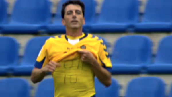 En 2012, este gesto pacífico y solidario de Javi Guerrero con su amigo Tote, del Hércules entonces, le costó al delantero de la UD 2.000 euros y una amonestación. Alzó levemente la camiseta ...