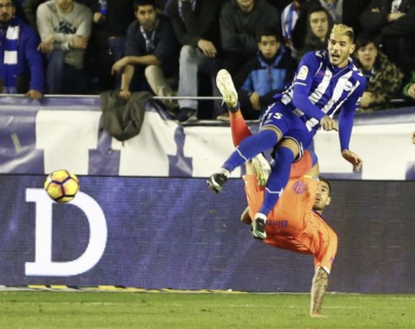 Uno de los intentos de chilena de Livaja, en el área del Alavés (La Liga)