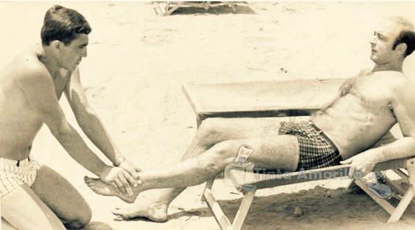 Ulacia, atendido por su compañero Aparicio, en la recuperación de su rodilla (Archivo Norberto Rodríguez)