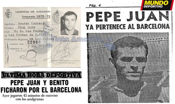 Pepe Juan era entonces la nueva esperanza del fútbol grancanario. No pasaba inadvertido su progresión. "Anteriormente, un año atrás, me había llamado el Real Madrid por mediación de Luis Molowny. También estuve unos meses en Madrid, con toda mi familia. El Artesano nunca aceptó darme la baja federativa. Había entonces una especie de derecho de retención de los clubes si no hacía un cambio de residencia con toda mi familia. Fueron muchas dificultades y nos volvimos. Pero en el caso del Barcelona, sí hubo incluso el pago de un traspaso. No recuerdo la cantidad".