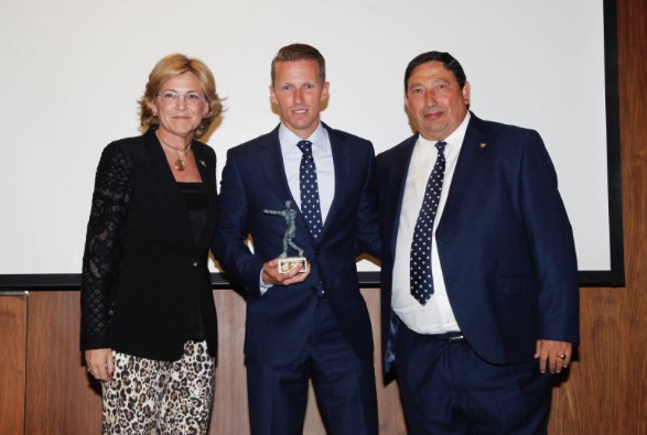 El colegiado lanzaroteño Alejandro Hernández recibió este domingo su premio Vicente Acebedo, que se concede al mejor árbitro de la Primera División 2016-17.