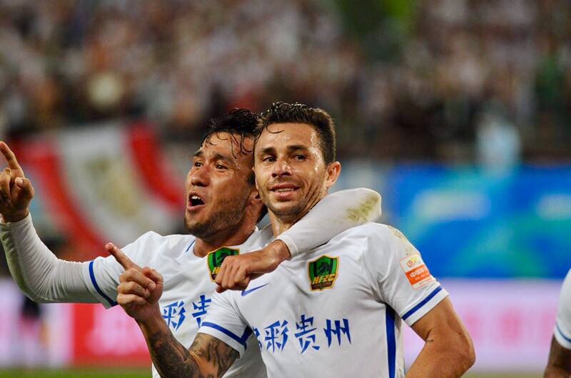 El delantero grancanario Rubén Castro anota su primer gol en la Liga de China. Resolvió el partido de su equipo, Guizhou, con un remate astuto. Su celebración fue tocándose los mofletes. Pidieron un fuera de juego inexistente. La afición de su equipo ya le canta con la esperanza de que prolongue su estancia. Pero en el Betis hacen cuentas para enero