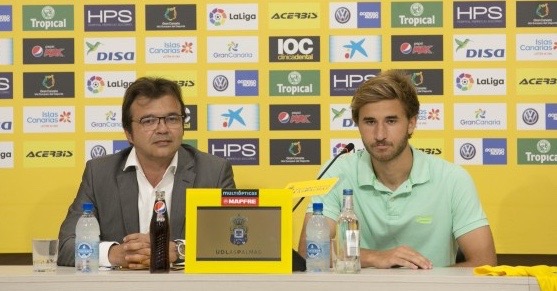 El futbolista dijo en el acto que viene a la UD Las Palmas con el objetivo de dar un "equilibrio y organización" al juego de los amarillos, con unas declaraciones moldeadas bajo la idea de que "encajo perfectamente en la filosofía del club".
