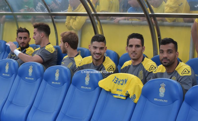 Siete jugadores refuerzos del exterior, contratados para el actual proyecto, estuvieron este domingo en el banquillo de la UD Las Palmas en este partido contra el Levante. El dato es evidentemente llamativo: Chichizola (portero), Bigas y Macedo (defensas), Aquilani, Samper y Hernán Toledo (centrocampistas) además del delantero Remy (fuera de imagen).