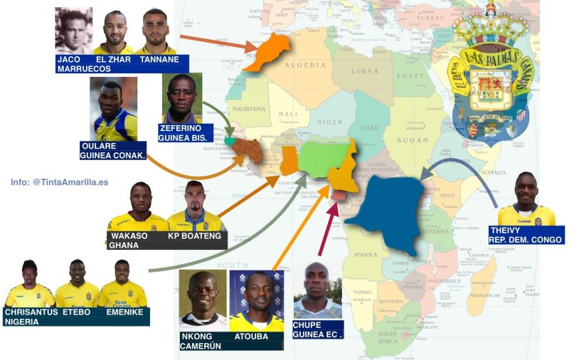 África es el continente más cercano al club grancanario y, tradicionalmente, ha estado lejos de sus planes. Porque apenas una quincena de jugadores nacidos en el continente han defendido o defienden el escudo del equipo amarillo.