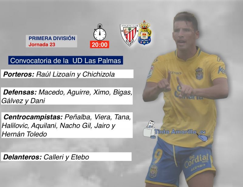 La lista de convocados para el partido de San Mamés, con cuatro jugadores canarios en ella, es la siguiente: