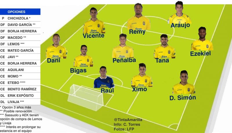 La comisión deportiva UD Las Palmas tiene abundante trabajo antes de llegar el mes de agosto de 2018: hay que reconstruir un equipo y banquillo para el asalto en la Segunda División. Pero no tendrá que romperse las vestiduras por ello, aunque un número importante de jugadores de la actual plantilla terminan ciclo el 28 de junio. Algunos podrían interesar y otros irán a nuevos destinos.