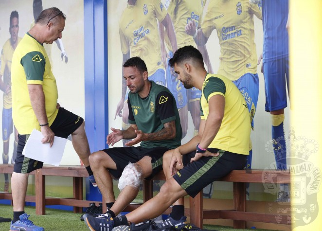 Informa la UD Las Palmas que en el entrenamiento de este miércoles, a puerta cerrada, Momo Figueroa "ha sufrido hoy durante el entrenamiento una torcedura en la rodilla izquierda. Mañana será valorado por los servicios médicos del club en el Hospital Perpetuo Socorro. Según la primera valoración de los servicios médicos, Momo sufrió hoy una torcedura en la rodilla izquierda, con dolor agudo en el ligamento colateral interno. Mañana, por la tarde, se le realizarán pruebas de imagen en el Hospital Perpetuo Socorro con el fin de descartar lesión de ligamento de la rodilla".