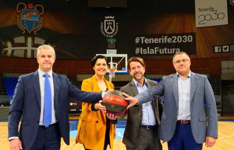 Este jueves 16 de mayo se ha refrendado el acuerdo para la celebración de la Supercopa Endesa 2020 en la isla de Tenerife. Carlos Alonso, Presidente del Cabildo de Tenerife, y José Miguel Calleja, Director General de la ACB, acompañados por Félix Hernández, Presidente del Iberostar Tenerife, y María del Cristo Pérez, Consejera de Deportes del Cabildo de Tenerife, han sellado el acuerdo tras la aprobación realizada por el Consejo de Gobierno del Cabildo esta misma semana.