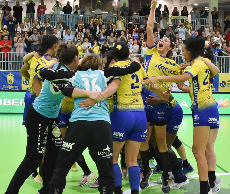 El balonmano de Gran Canaria vivió este viernes 24 de mayo su página más gloriosa de cuantas ha protagonizado durante casi seis décadas. Por fin el Rocasa lleva a sus vitrinas un título de Liga, el de las guerreras de la División de Honor femenina española. Lo hizo con todo merecimiento, en un partido que resolvió casi a modo de exhibición (31-18), provocando que la alegría se desbordara en la coqueta instalación de Jinámar.