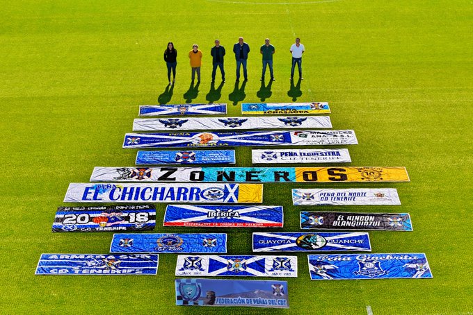 El CD Tenerife hizo entrega esta semana de las correspondientes pancartas a cada colectivo de animación adscrito a la Federación de Peñas del club, a través de los representantes de la propia Federación.