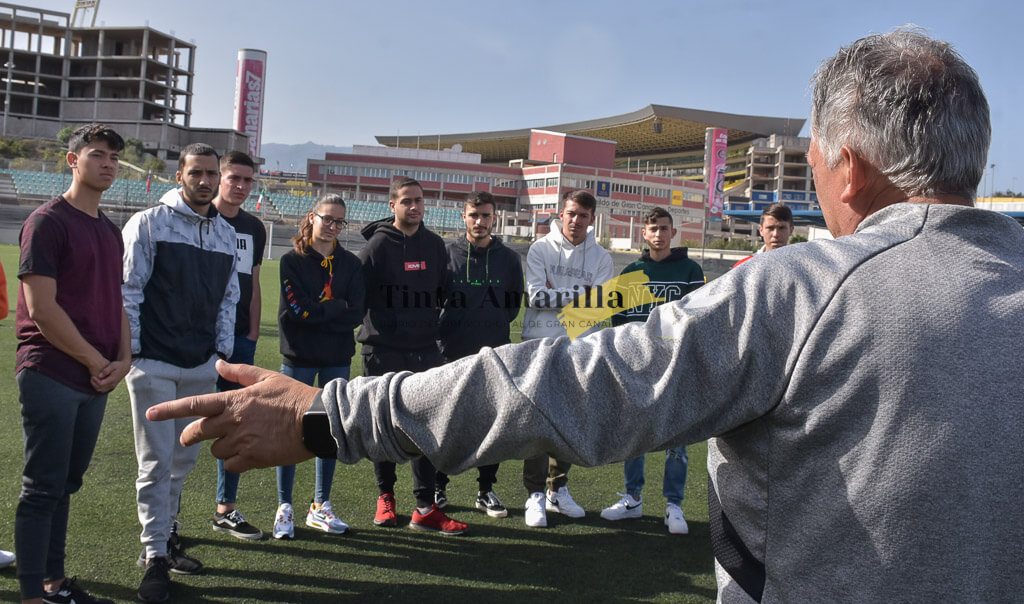 Una decena de alumnos del IES Felo Monzón, en Siete Palmas, presenció este jueves el entrenamiento de Las Palmas Atlético en el estadio Anexo al Gran Canaria. Lo hicieron con dos representantes del profesorado, Alejandro Díaz y José Antonio Arteaga.