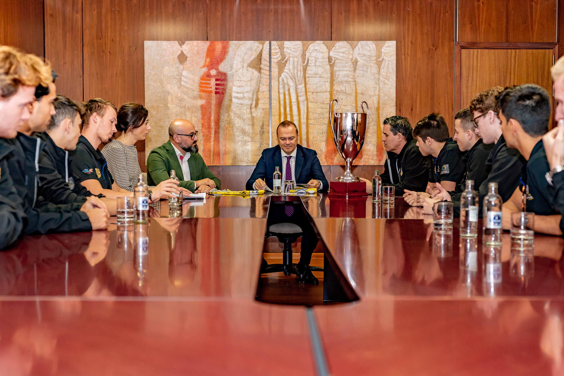 Posteriormente, la comitiva se desplazó hasta el ayuntamiento de Las Palmas de Gran Canaria, donde fueron recibidos tanto por el alcalde, Augusto Hidalgo, como por el concejal de Deportes, Aridany Romero.