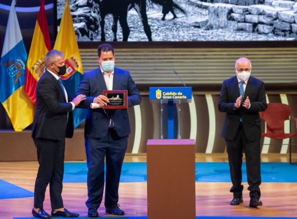 Miguel Déniz Méndez (37) ha recibido de manos del presidente del Cabildo de Gran Canaria, Antonio Morales, el Roque Nublo en reconocimiento a su labor deportiva durante mchos años.