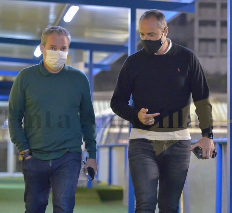 Se acerca la hora. El cierre del primer mercado y el aeropuerto de la UD Las Palmas abierto para alguna llegada y varias salidas. Los teléfonos arden. Tino Luis Cabrera y Luis Helguera, en imagen, no se separan de ellos porque las decisiones son inminentes. ¿Y después del 5 de octubre?. Más de lo mismo, porque las gestiones nunca acaban para avanzar el terreno.