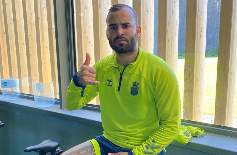 El delantero está muy motivado y, aunque no participó en el encuentro frente al Sabadell, se le vio en las gradas del Gran Canaria animando y aconsejando a sus nuevos compañeros.