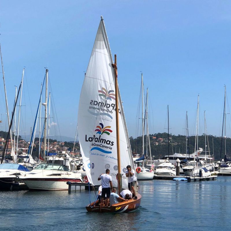 El bote de Vela Latina, que lleva impreso en su enorme vela el nombre y la marca turística de la capital grancanaria, ‘Las Palmas de Gran Canaria, ciudad de mar y culturas’, participa mañana sábado, 21, y el domingo, 22, en el encuentro de embarcaciones tradicionales que se celebra desde hace más de dos décadas en el singular pueblo marinero de Combarro, muy conocido por sus tradicionales hórreos y cruceros.