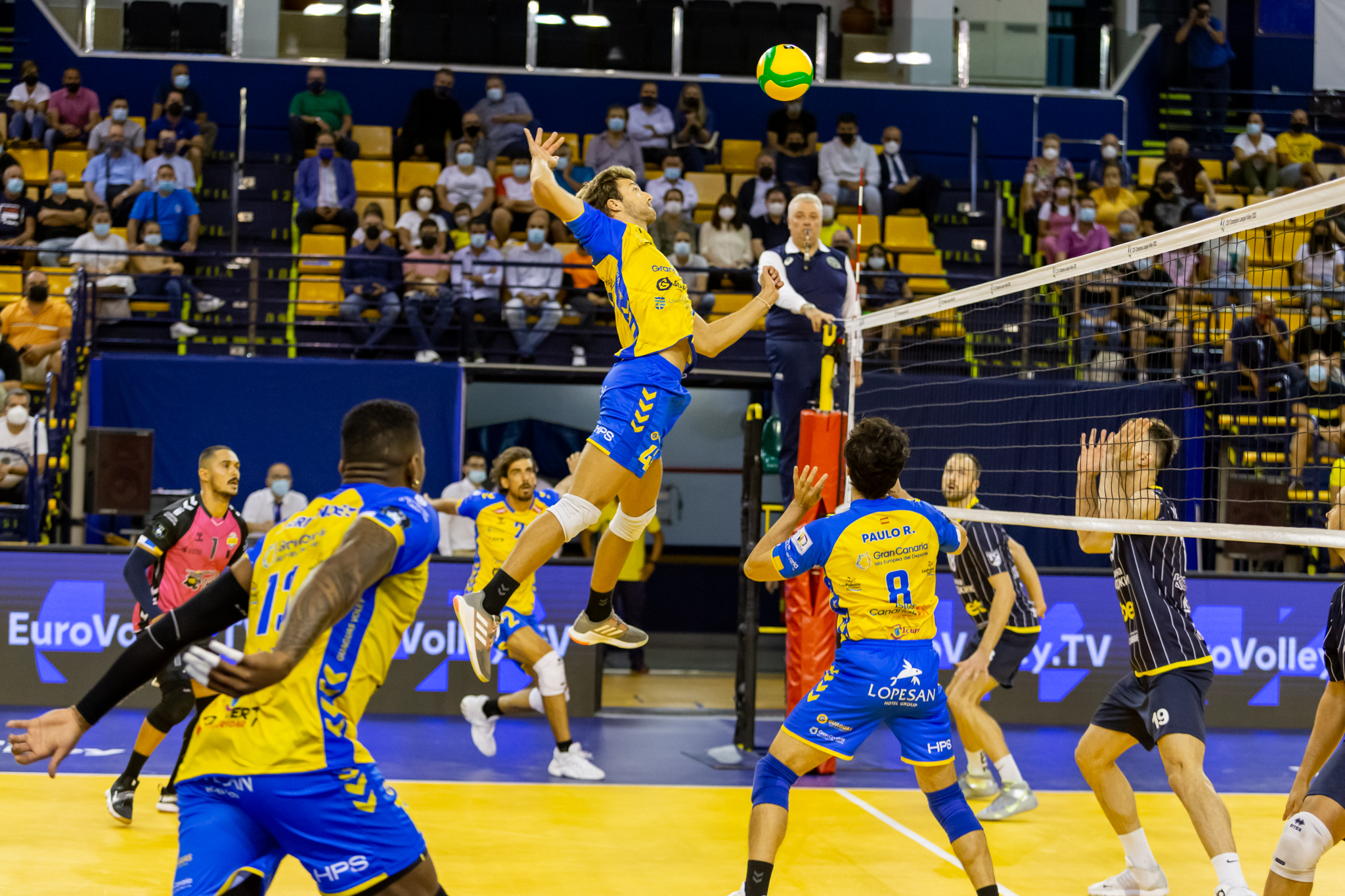 Borja y Matt imponían su ley en el centro de la red, con Yosvany desatado en ataque para colocar el 16 iguales con un hachazo espectacular, hasta que un portentoso remate del central norteamericano obligaba al técnico visitante a parar el partido con 17-16 en el marcador tras culminar los grancanarios la remontada.