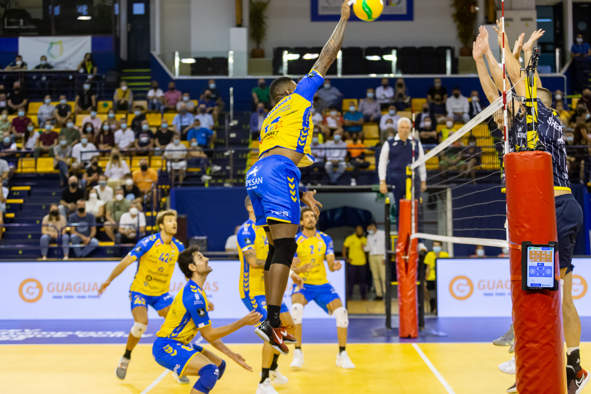 Gran debut del Guaguas en la Champions de Voleibol. Este martes ganó 3-0 en el Centro Insular de Deportes. Lo hizo ante el temido conjunto búlgaro, Hebar Pazardzhik, ante una audiencia que animó al equipo de Sergio Miguel Camarero para conquistar el choque de ida.