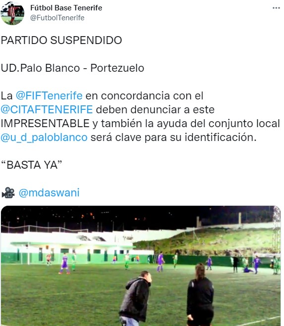 Deporpress.com. Una vez más se vuelve a vivir un incidente lamentable en el fútbol regional del archipiélago. Esta vez los hechos se produjeron en la isla de Tenerife en el partido que medía a la UD Palo Blanco y el CD Portezuelo Tegueste.