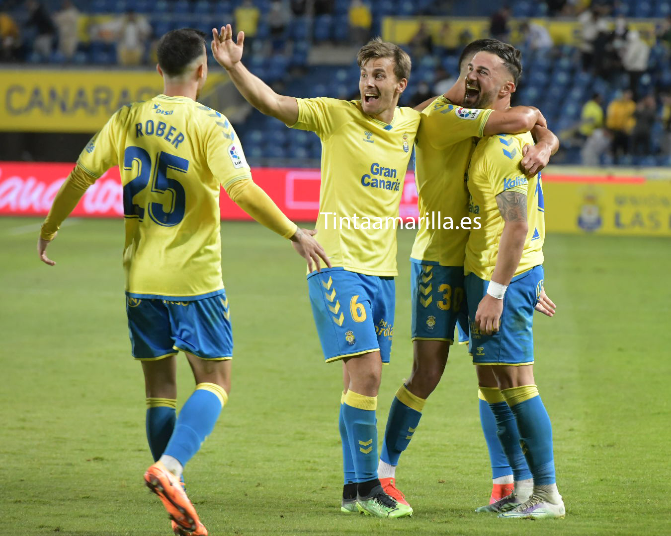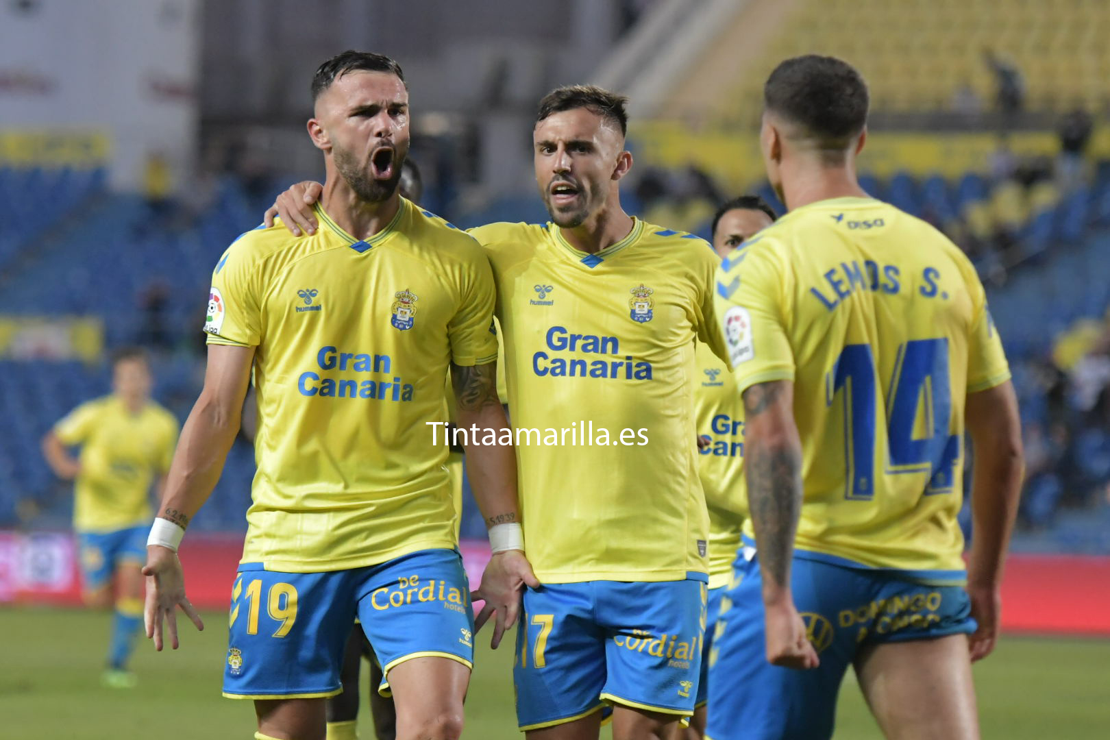 Fue un instante de inquietud. Una nueva adversidad había llegado al Estadio de Gran Canaria, pero la respuesta amarilla fue contundente. En seis minutos el partido había cambiado de mano. Las Palmas le metió dos marchas a su juego, que hasta entonces carecía de remate, y en un abrir y cerrar de ojos convirtió el 2-1. Primero, con un gol fabricado con la sociedad entre Álvaro Lemos y Armando Sadiku. Como en Valladolid, el centro del gallego lo convirtió en gol el albanés. Y después, completó la remontada en una jugada de córner que transformó en gol un excelente disparo de Kirian.