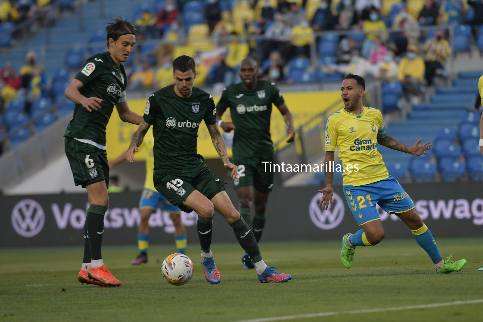 Pormenores: Partido de la jornada 33 de la Segunda División, disputado en el Estadio de Gran Canaria. En las gradas, 6.951 espectadores con presencia de una peña del CD Leganés. En el tiempo extra del partido, los aficionados cantaron el 'sí, se puede'.