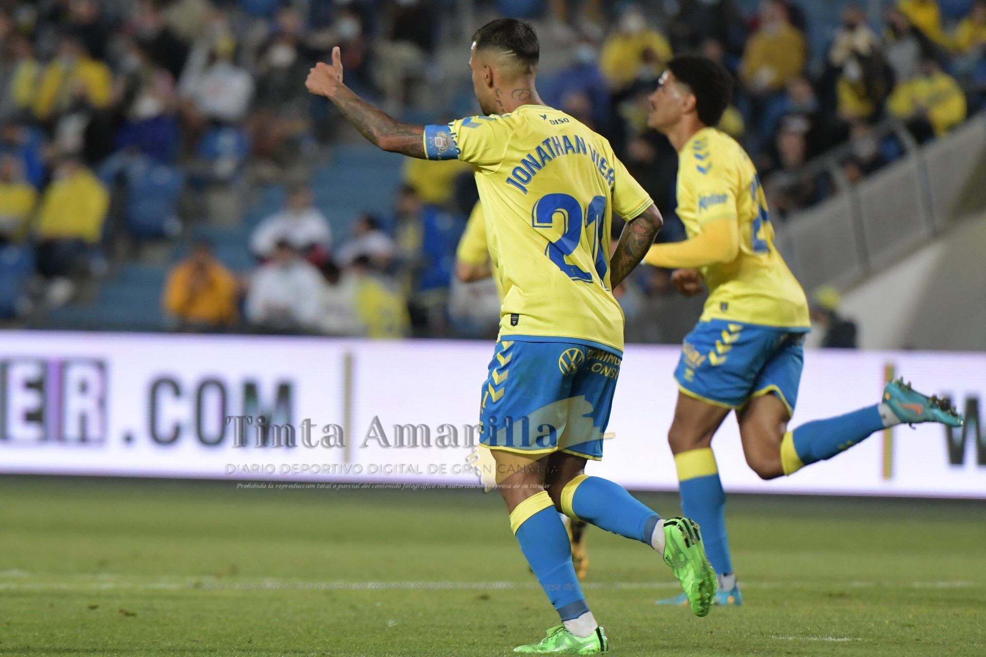 En ese contexto del juego tan denso, Las Palmas reclamó una falta a Jonathan Viera cuando encontró un carril central y Nolaskoain lo derribó. Pero García Verdura ni el VAR (Moreno Aragón) concedieron la reclamación de los amarillos.