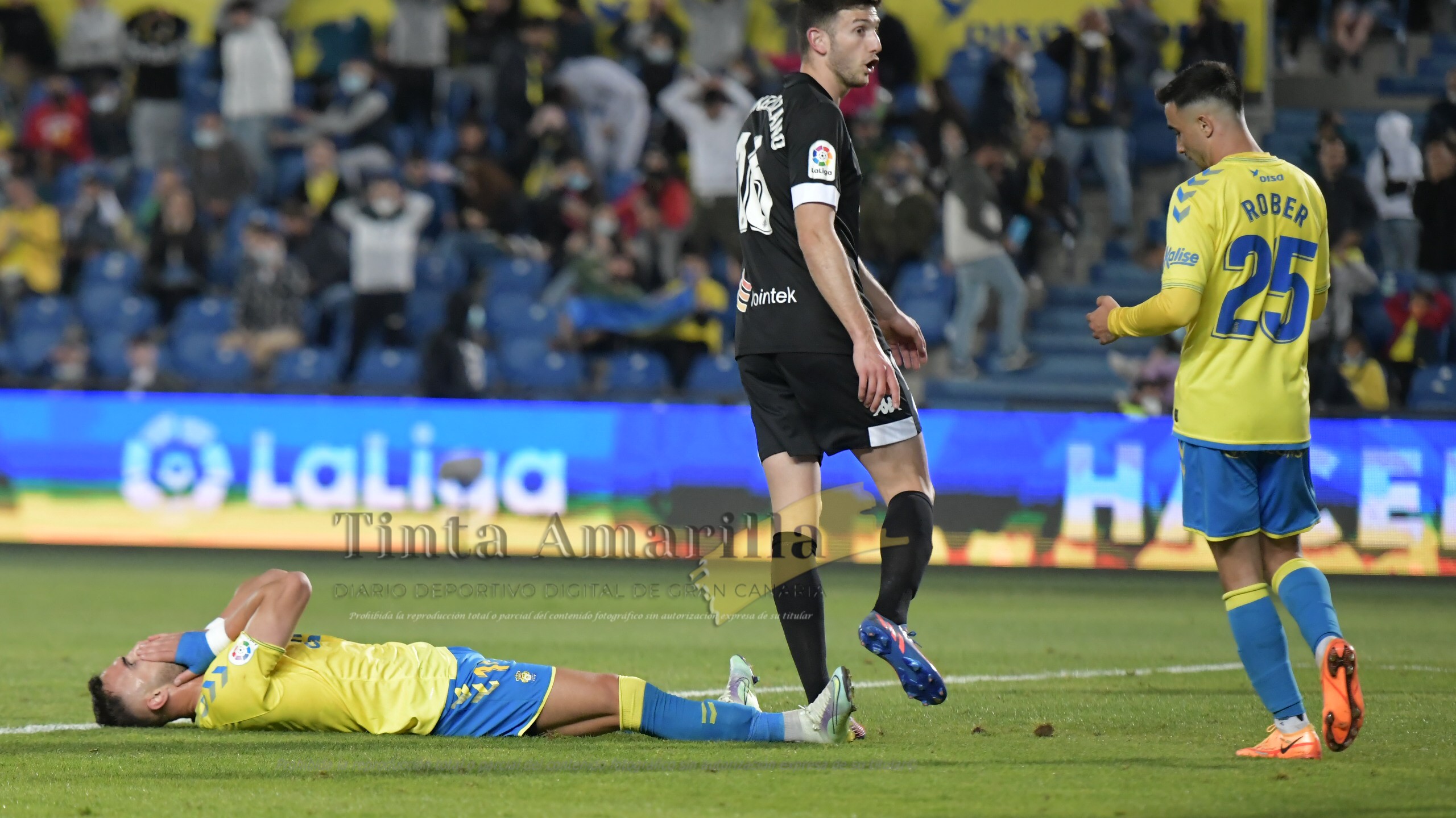 El gol no le había sentado bien a Las Palmas. El VAR y el colegiado también intervinieron en el minuto 68 para anular un gol a Alvaro Peña, que habría significado el empate, por fuera de juego influyente de un compañero dificultando la visión de Valles. Ese primer momento complicado pasó esta vez ‘a favor’ de los amarillos, que jugaban con fuego.