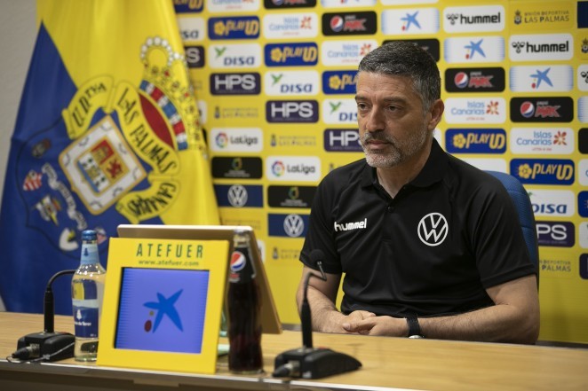 “Nos quedan siete partidazos y no pienso en nada más”, expresó al ser preguntado por su año extra como entrenador de la UD Las Palmas.