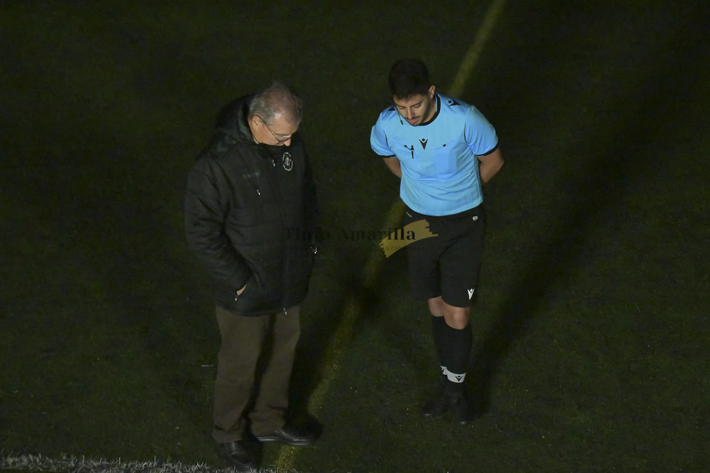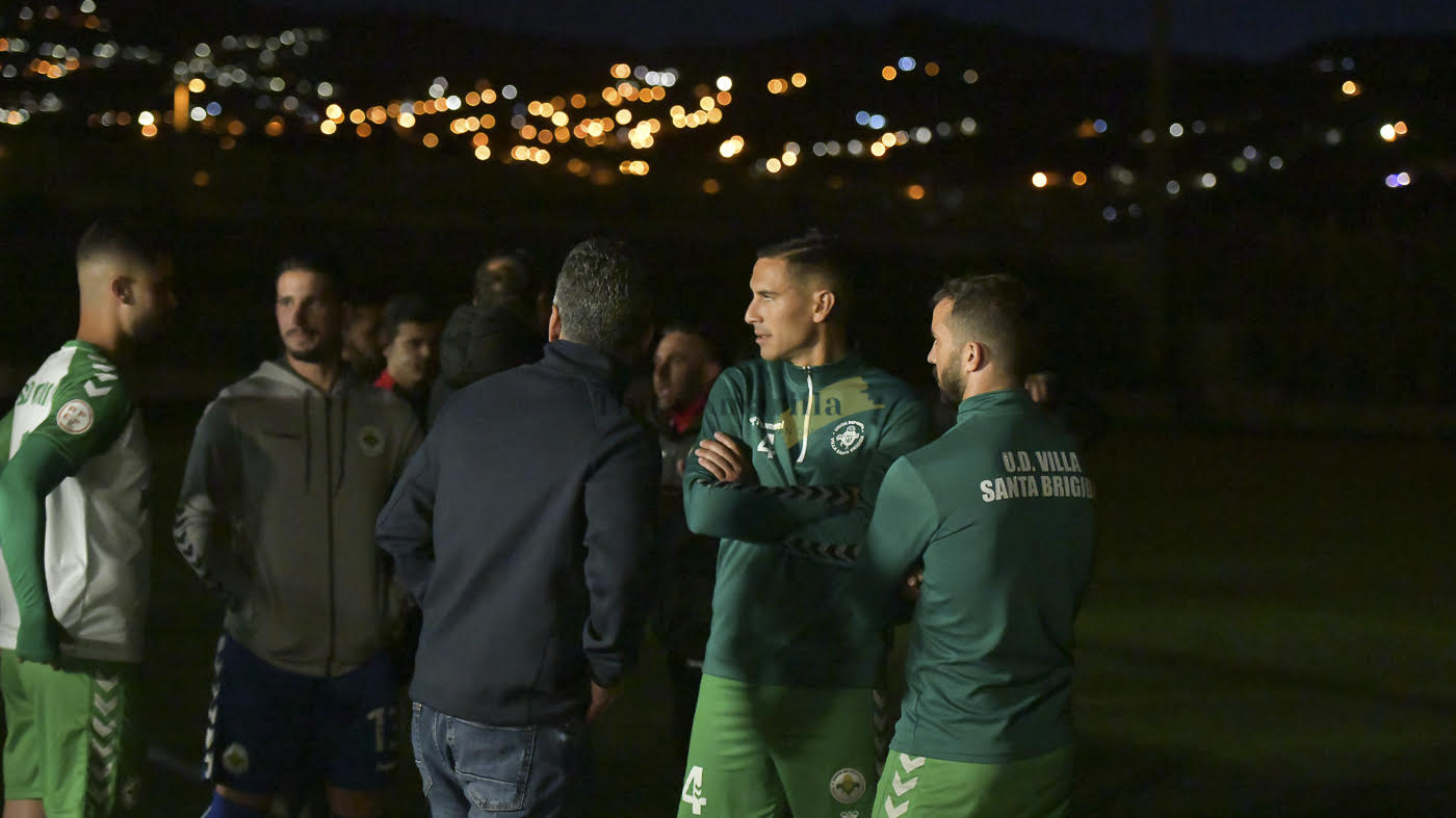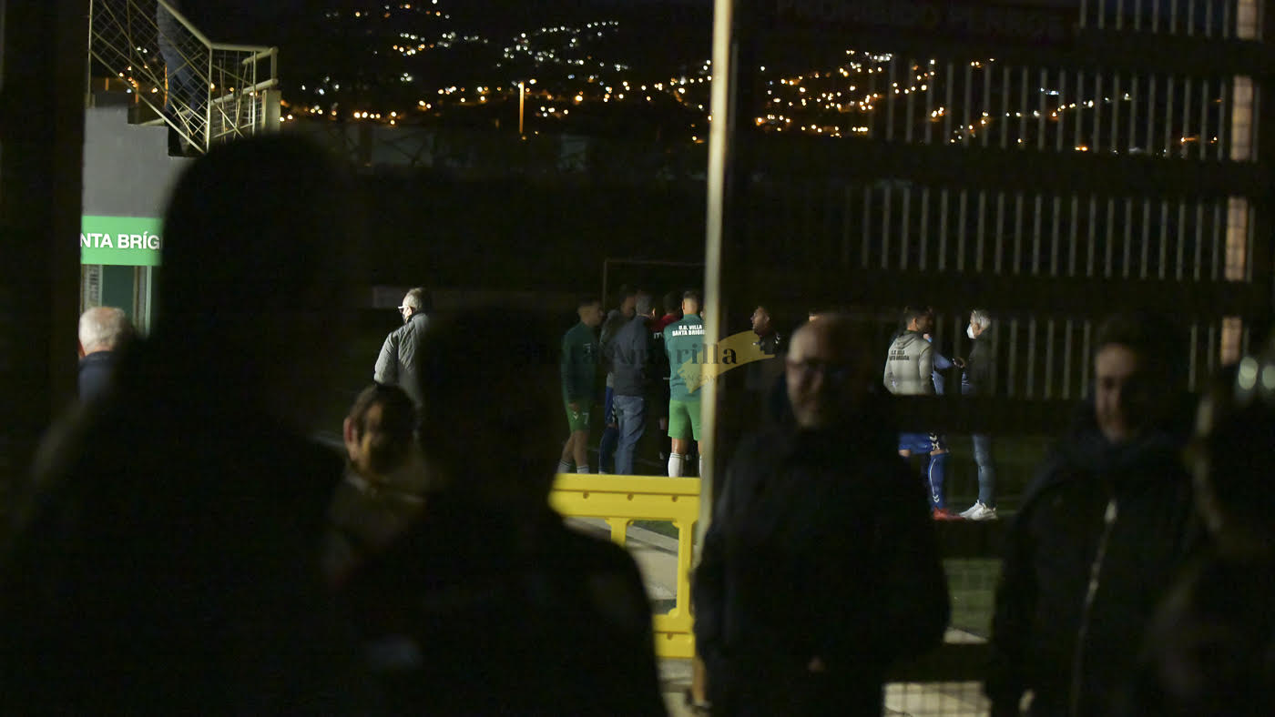 A eso de las 21.50 terminó la incertidumbre. El colegiado Aridane Hernández Sosa regresaba al campo de juego de Los Olivos después de una inspección en la ‘zona cero’, el lugar donde trataban de solucionar una avería. Fue el momento en que el árbitro grancanario confirmó que “es imposible”, porque fueron estériles todos los esfuerzos que se habían realizado para establecer la luz artificial en las cuatro torretas del campo satauteño.
