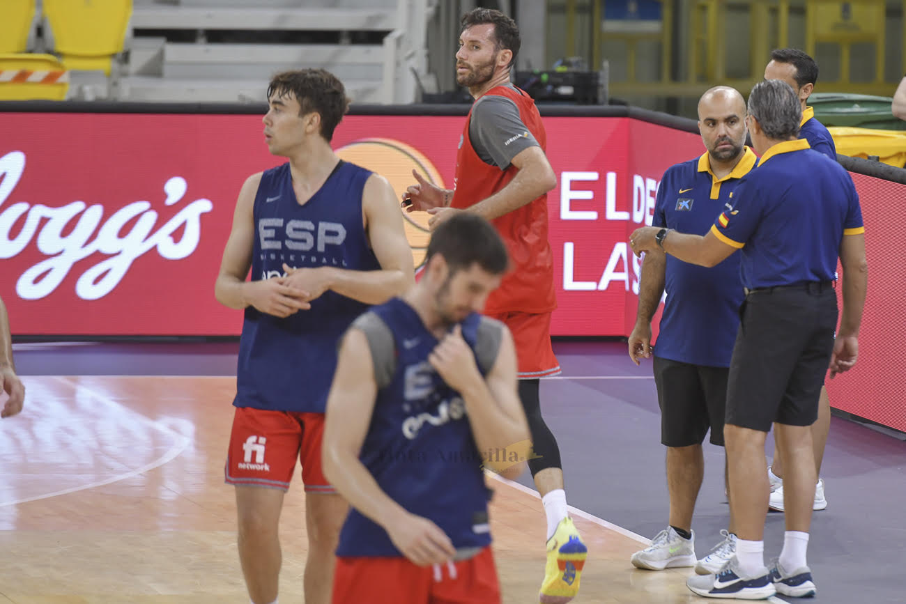 La selección se entrenaba este lunes en el escenario del encuentro, con puñado de jóvenes aficionados presenciando las evoluciones del equipo dirigido por Sergio Scariolo.