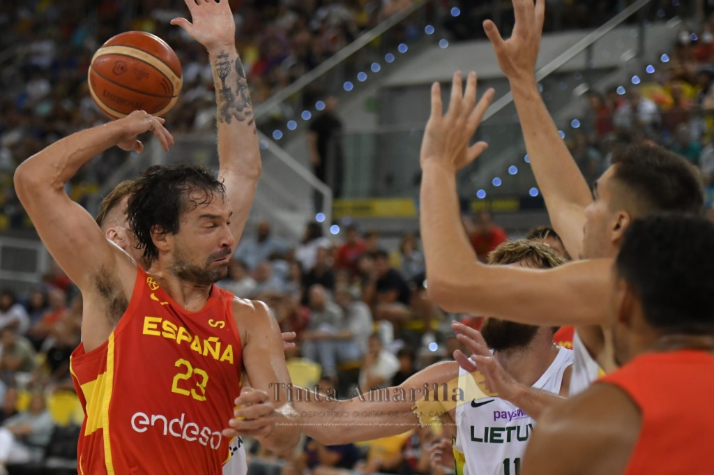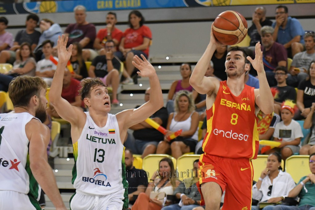 La Selección Española jugó este martes en el Gran Canaria Arena el esperado amistoso frente a Lituania. No estuvo bien el equipo de Sergio Scariolo, con muchos problemas para contener a los poderosos pívots lituanos y sin precisión adecuada en el tiro exterior. Y si todo estaba por fallar, su margen de mejora puede incluso localizarse en la abundancia de tiros libres malogrados. Porque a pesar del escueto final (77-82), lo cierto es que sobre el parqué isleño hubo más distancia en relación al juego más consistente del lituano.