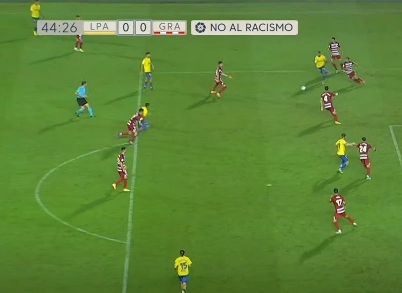 Pero en el campo, el conjunto nazarí tenía claro que había que negarle el balón a Jonathan Viera. El capitán de los amarillos participó en el primero y segundo tanto de la UD Las Palmas. Y en ambos tuvo que salir de la ecuación táctica que le planteó Karanka a sus jugadores: Por si acaso, cuatro con Jonathan Viera.