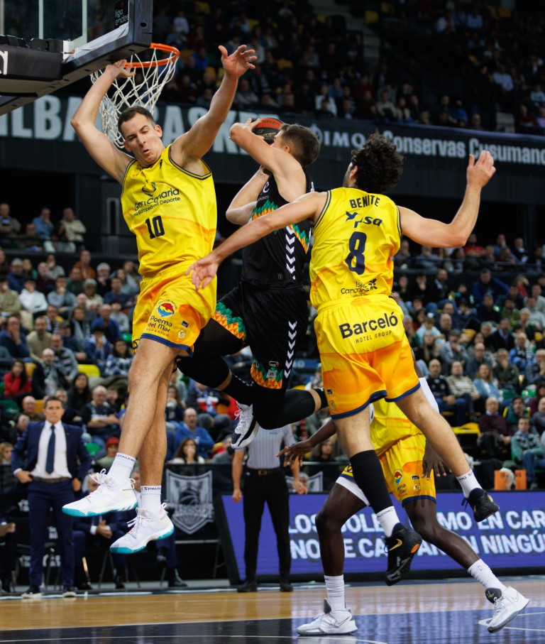 Había que apostar por poner la misma adrenalina en el juego que los bilbaínos. Así, el Gran Canaria terminó por demoler la ventaja local y romper el partido con el mate de Diop para empatarlo a 22 a 7:38 del descanso; y dos más tarde, con triple de Benite muy alejado, tomar la primera ventaja (24-27) a la que pronto le daría respuesta el equipo de negro (29-27).