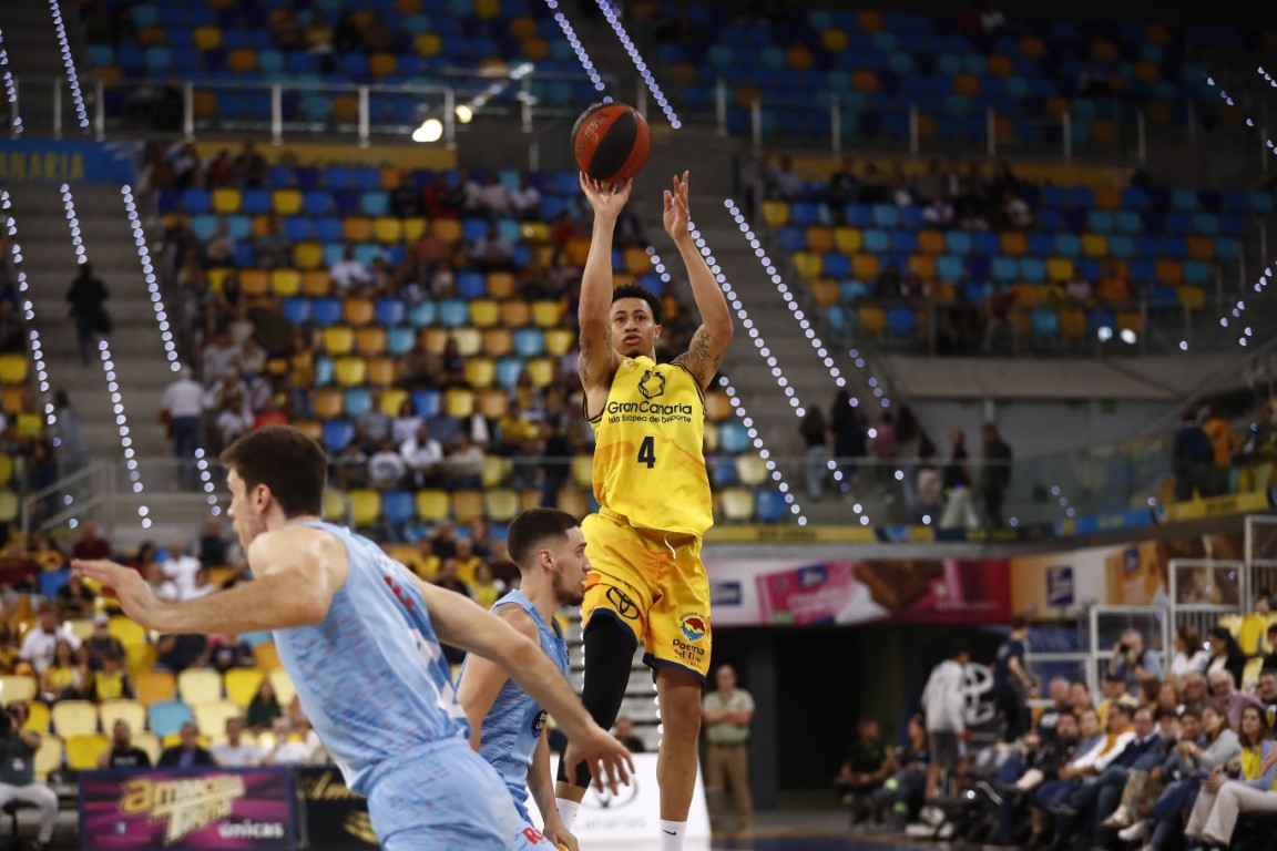 Con más control en la posesión y añadiendo al triple más rebotes en ataque, el Gran Canaria empezó a poner tierra de por medio en el tercer cuarto. Con 49-37 a 5:55 del último cuarto, el conjunto amarillo situaba su máxima renta en el choque, y que estiró a los 14, un triple galáctico de Brussino casi tres minutos después (58-44).