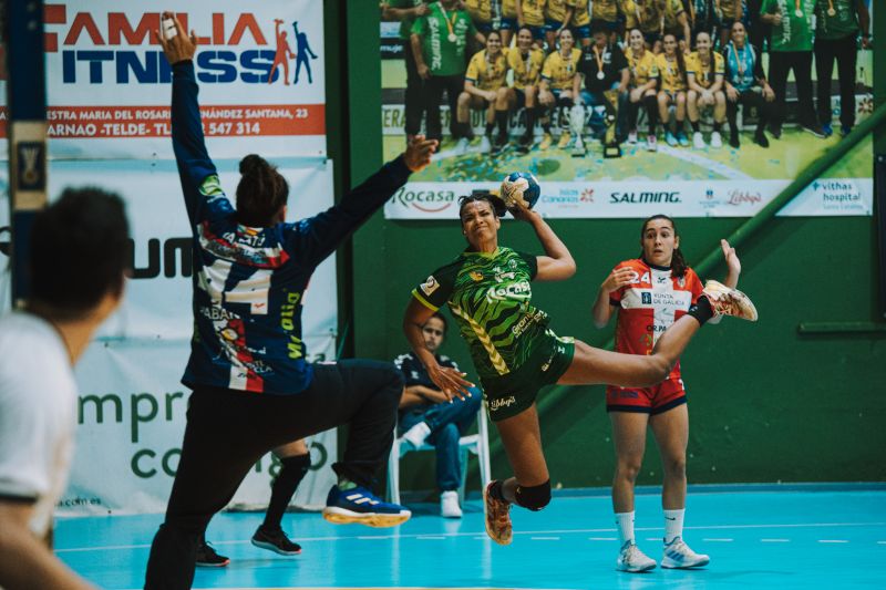 La puntería se mudaba de barrio y eran las teldenses quienes se quedaban encalladas en ese décimo tanto. El Atlético Guardés se recomponía para seguir reduciendo la desventaja en el marcador y poner el partido a tan solo un tanto de diferencia (10-9). En los últimos segundos de partido, las de A Guarda tenían incluso una ocasión para igualar la contienda.