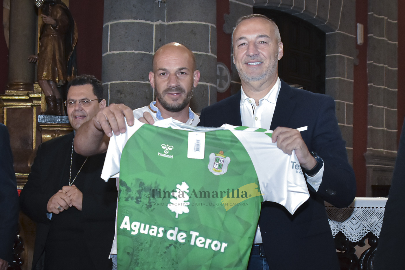 El Teror Balompié dejó en manos de Miguel Ángel Ramírez un recuerdo del club, en reconocimiento también a la gesta de los amarillos.