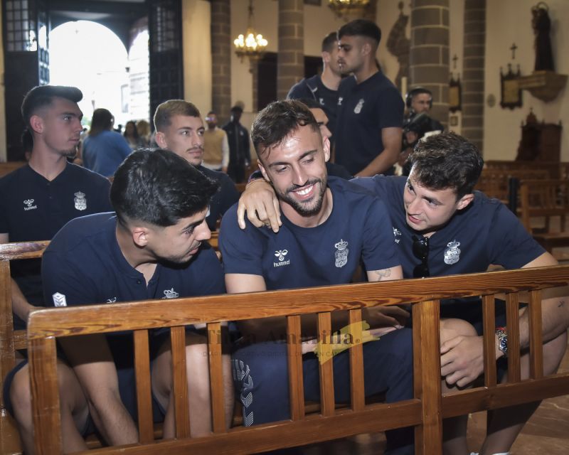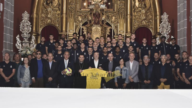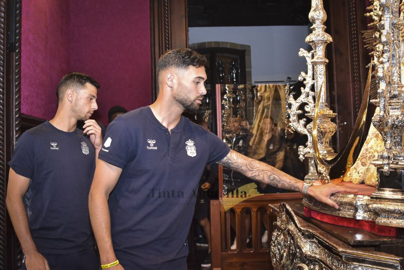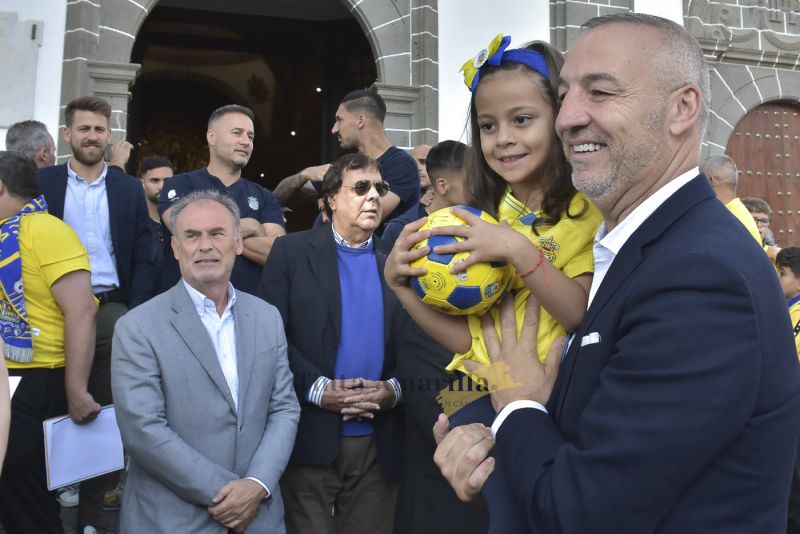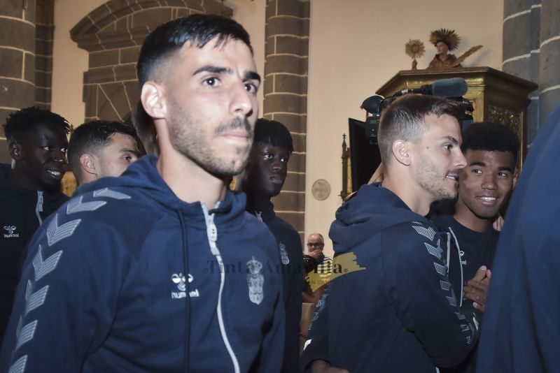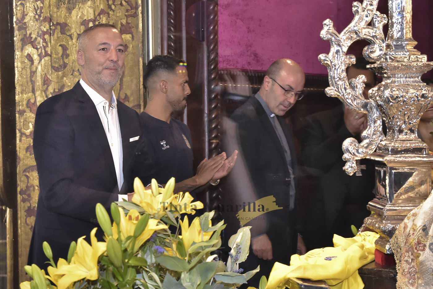 “¡Que viva la Virgen del Pino!. ¡Que viva la Unión Deportiva Las Palmas!”. La primera escena de la semana post retorno a Primera tuvo lugar en el origen de la campaña: La visita a la Patrona para brindarle el éxito deportivo cosechado, al margen de una ofrenda floral.