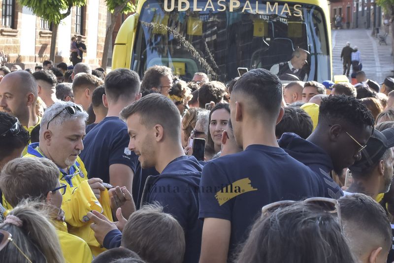 Todo el consejo de administración de la entidad amarilla, en compañía de técnicos y futbolistas se desplazaron desde primera hora a la villa mariana, donde un nutrido grupo de aficionados les esperaba para recibir la siguiente ovación por el ascenso.