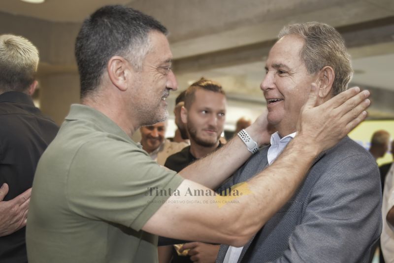 El acto se desarrolló en la planta quinta del Estadio de Gran Canaria, en un ambiente bañado en la alegría que ha proporcionado el último ascenso deportivo. Incluso el propio García Pimienta, que este mismo día firmaba su contrato de renovación, vivió en primera persona el epílogo de una campaña que ha desembocado en el séptimo salto a la Primera División.